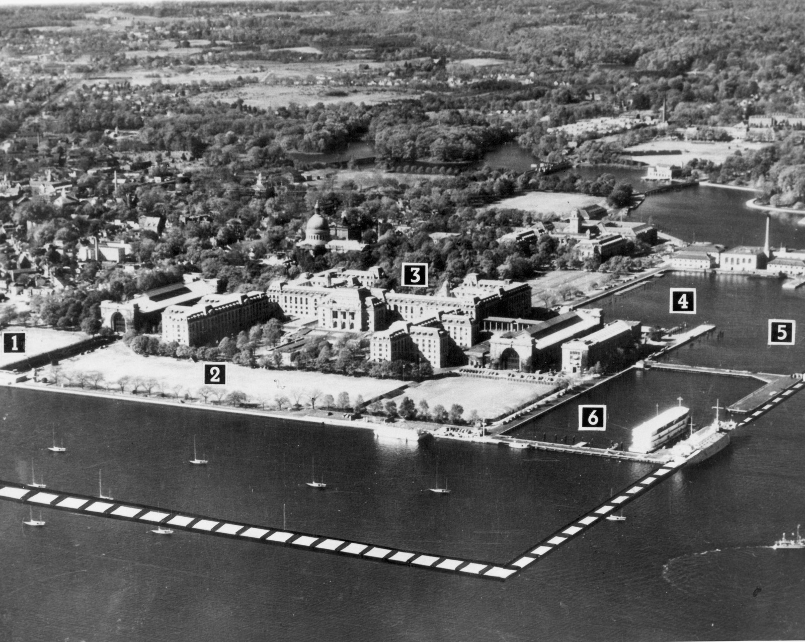 (2) Farragut field, used for drills and athletics, to be moved to the area to be filled in the foreground;