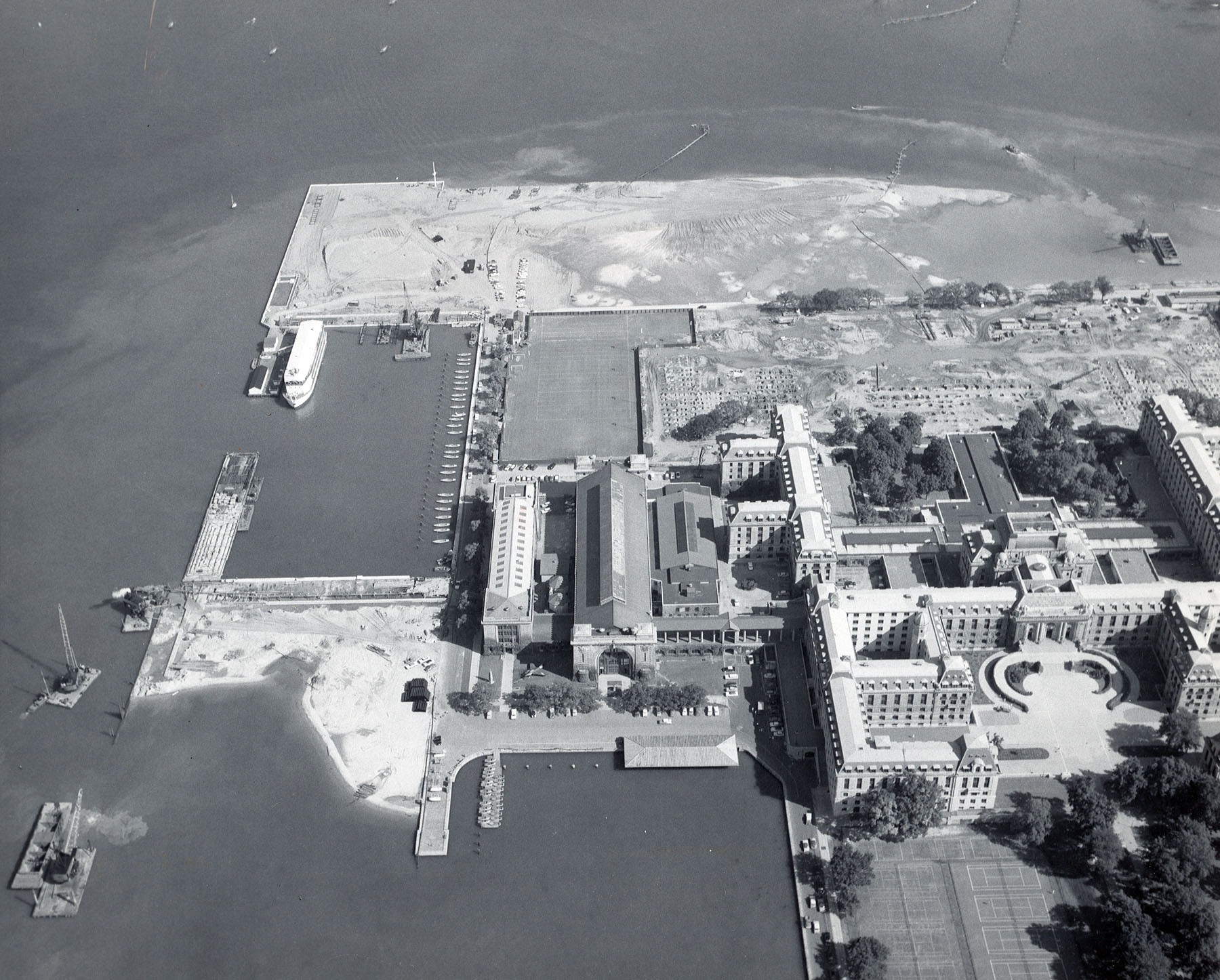 1958 the Landfill is Underway! The Reina Mercedes is gone. Bancroft Hall Wings 7 & 8 construction started. NEXT page For End of Show-click LAST